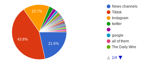 “If I’m being honest I don’t really watch the news, I just kind’ve got my information from TikTok,” said Zlata Putintseva a senior at Chapin High School. In a Google Poll taken by students at Chapin High, 43.8 percent of respondents said they got the news from TikTok, while 21.6 percent got the news from News Channels and 15.7 percent get their news from Instagram.